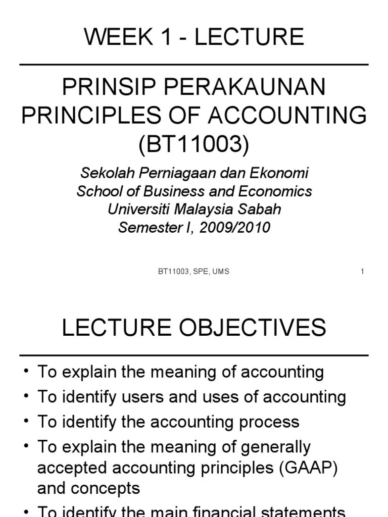 Prinsip perakaunan pertama adalah prinsip berterusan. Clear all filters · subjects : In middle english (used roughly between the 12th and the late 15th century) the verb to account had the form accounten, which was derived from the old .